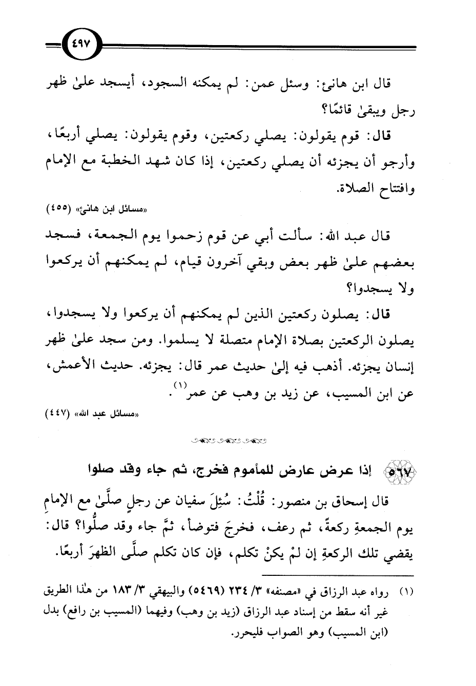 (¬1) رواه عبد الرزاق في "مصنفه" 3/ 234 (5469) والبيهقي 3/ 183 من هذا الطريق غير أنه سقط من إسناد عبد الرزاق (زيد بن وهب) وفيهما (المسيب بن رافع) بدل (ابن المسيب) وهو الصواب فليحرر.