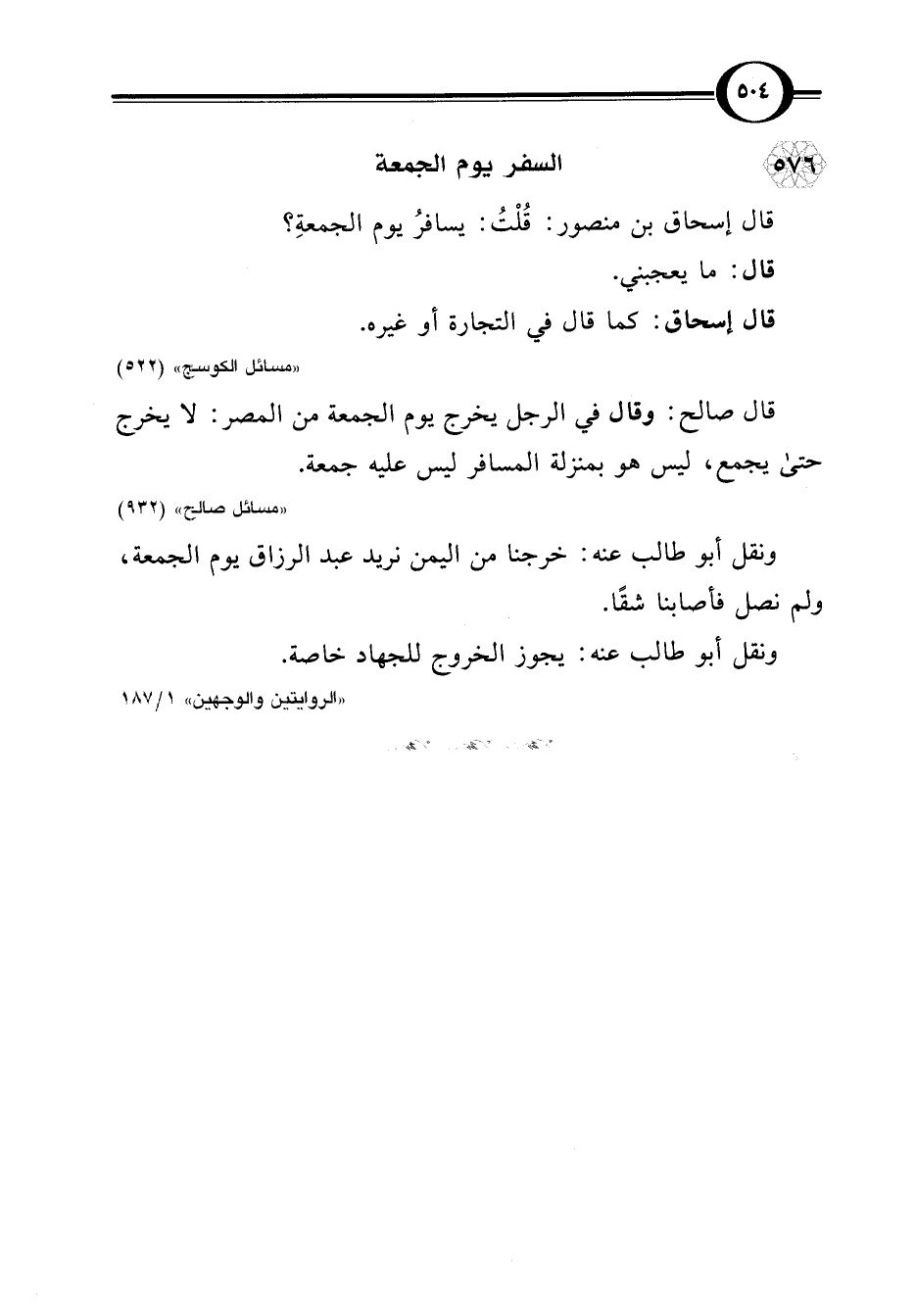قال إسحاق بن منصور: قُلْتُ: يسافرُ يوم الجمعةِ؟