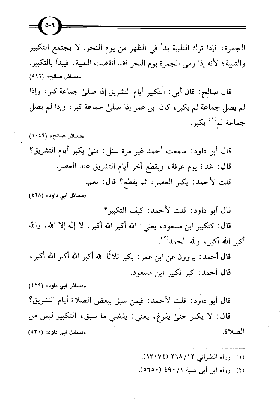 قال أبو داود: سمعت أحمد غير مرة سئل: متى يكبر أيام التشريق؟