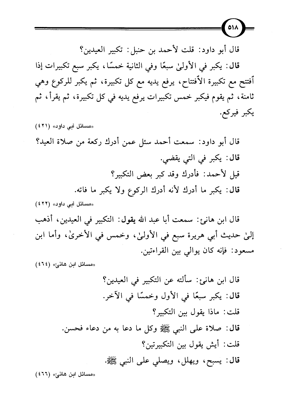 قال أبو داود: قلت لأحمد بن حنبل: تكبير العيدين؟