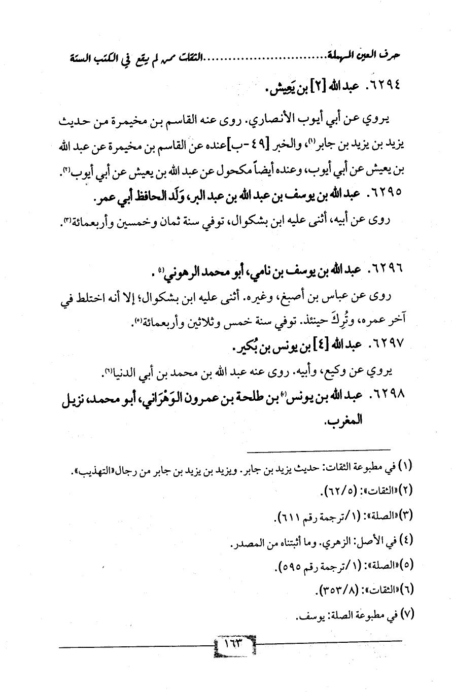 6298 - عبد الله بن يونس (¬7) بن طلحة بن عمرون الوَهْرَاني، أبو محمد، نزيل المغرب.