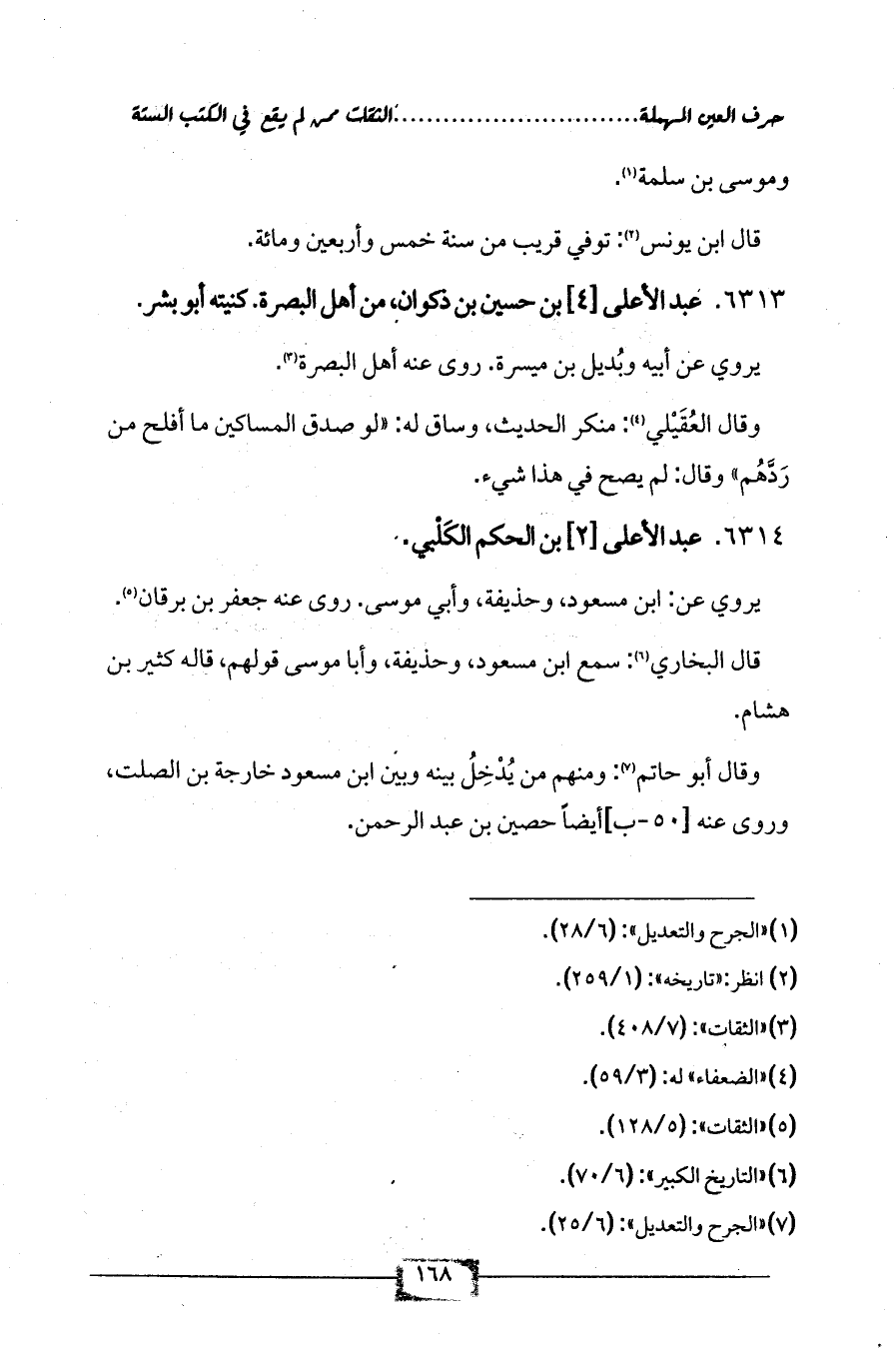 6313 - عبد الأعلى [4] بن حسين بن ذكوان، من أهل البصرة. كنيته أبو بشر.