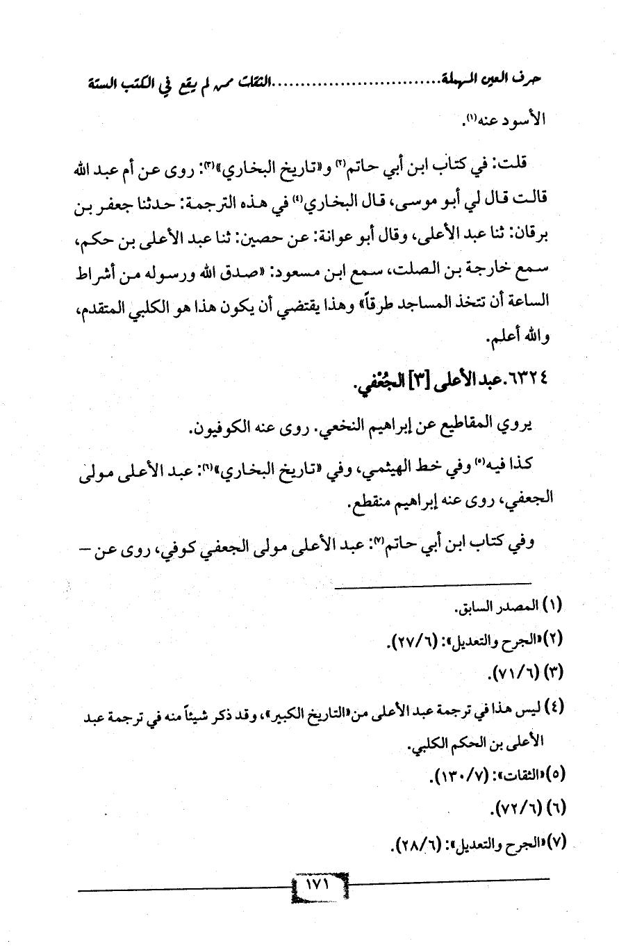 (¬4) ليس هذا في ترجمة عبد الأعلى من «التاريخ الكبير»، وقد ذكر شيئاً منه في ترجمة عبد الأعلى بن الحكم الكلبي.