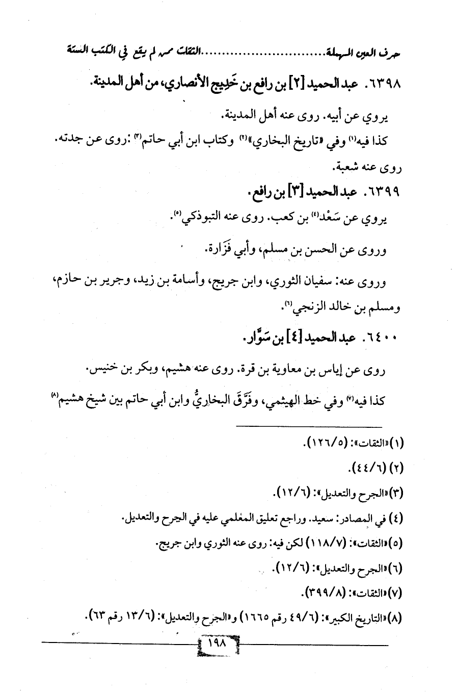 6398 - عبد الحميد [2] بن رافع بن خَدِيج الأنصاري، من أهل المدينة.