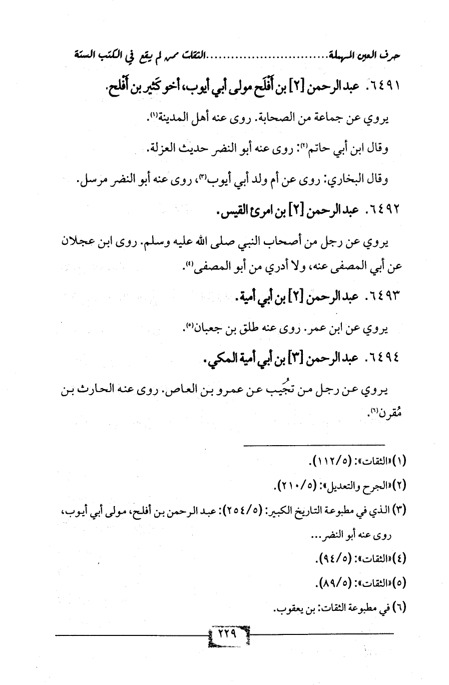 6491 - عبد الرحمن [2] بن أَفْلَح مولى أبي أيوب، أخو كَثير بن أَفْلح.