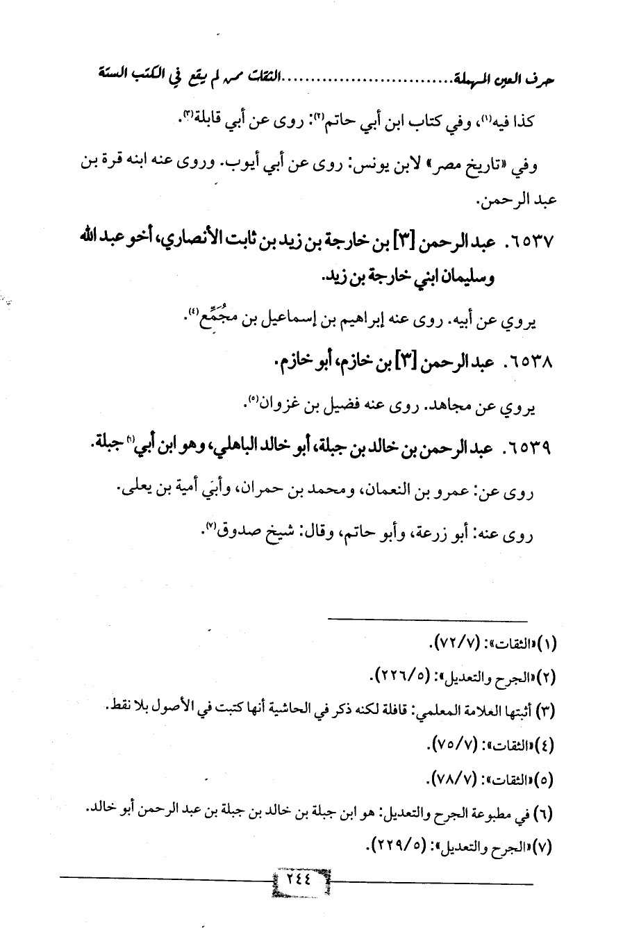 6539 - عبد الرحمن بن خالد بن جبلة، أبو خالد الباهلي، وهو ابن أبي (¬6) جبلة.