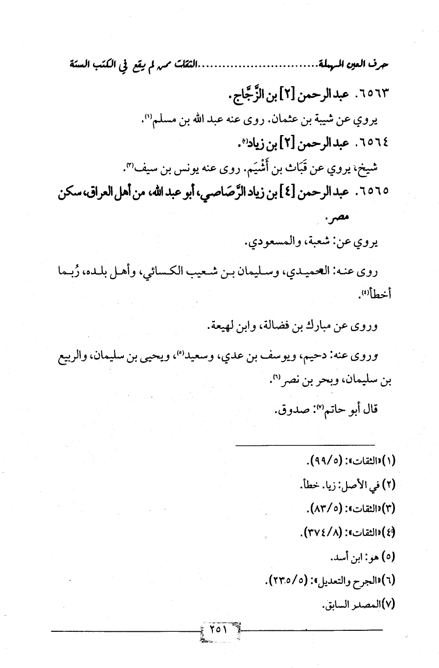 6565 - عبد الرحمن [4] بن زياد الرَّصَاصي، أبو عبد الله، من أهل العراق، سكن مصر.