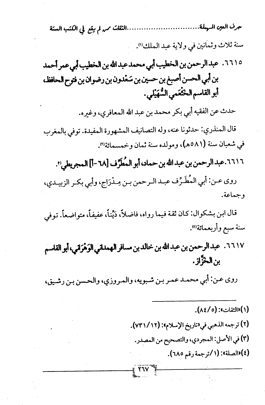 6617 - عبد الرحمن بن عبد الله بن خالد بن مسافر الهمداني الوَهْرَاني، أبو القاسم بن الخَزَّاز.
