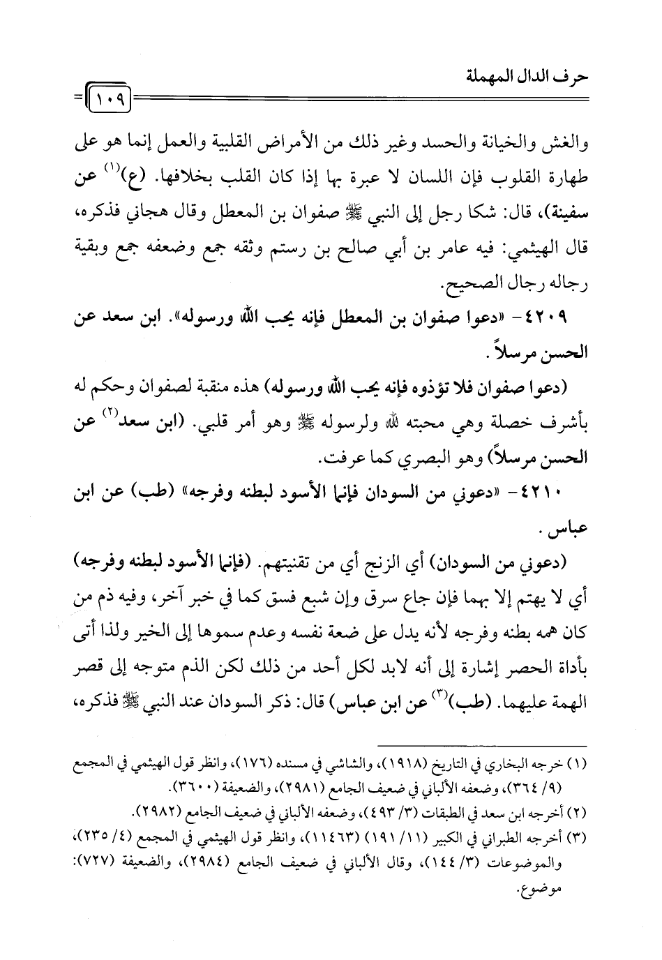 4210 - "دعوني من السودان فإنما الأسود لبطنه وفرجه) (طب) عن ابن عباس.