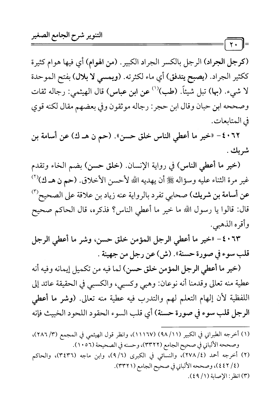 4062 - "خير ما أعطي الناس خلق حسن". (حم ن هـ ك) عن أسامة بن شريك.