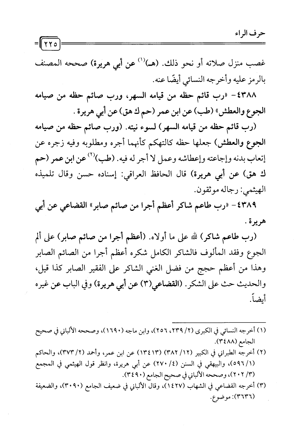 4389 - "رب طاعم شاكر أعظم أجرا من صائم صابر" القضاعي عن أبي هريرة.