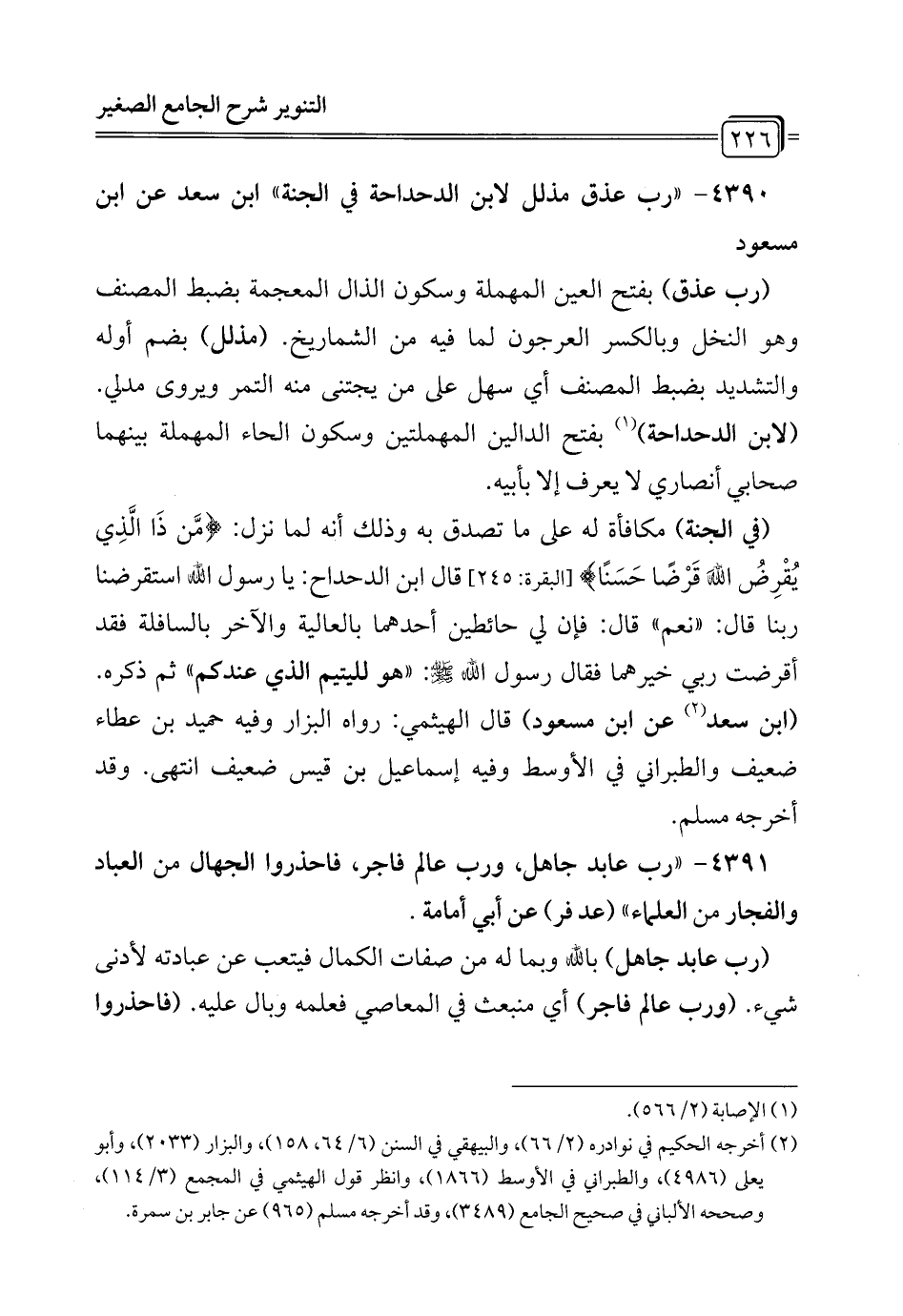 4390 - "رب عذق مذلل لابن الدحداحة في الجنة" ابن سعد عن ابن مسعود