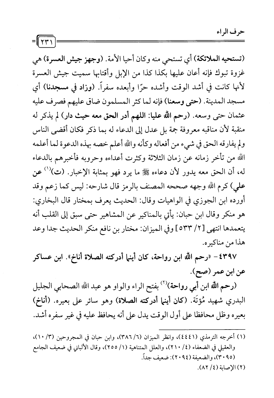 4397 - "رحم الله ابن رواحة، كان أينما أدركته الصلاة أناخ". ابن عساكر عن ابن عمر (صح).