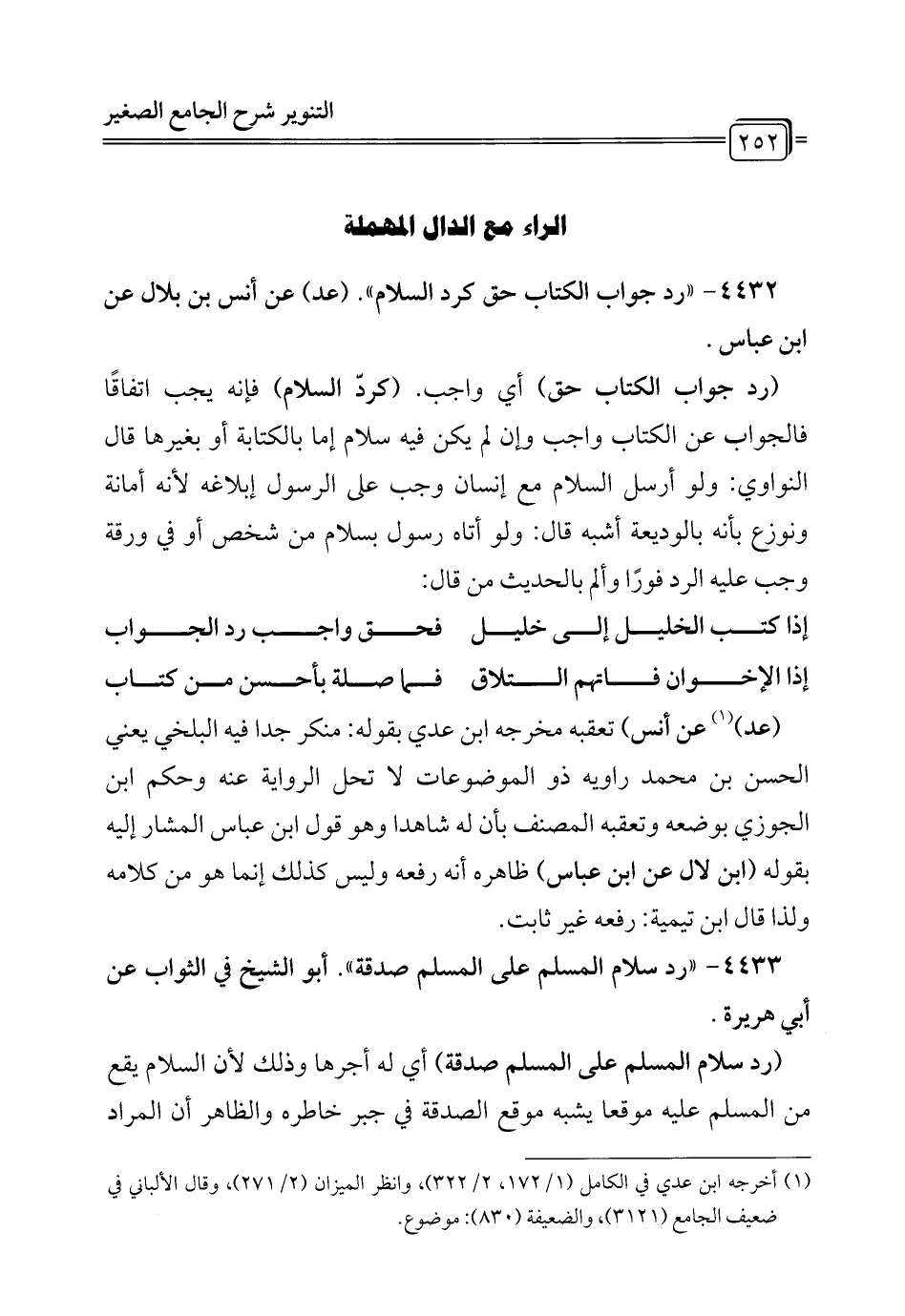 4432 - " رد جواب الكتاب حق كرد السلام". (عد) عن أنس بن بلال عن ابن عباس.