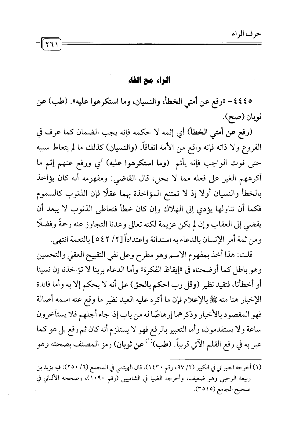 4445 - " رفع عن أمتي الخطأ، والنسيان، وما استكرهوا عليه". (طب) عن ثوبان (صح).