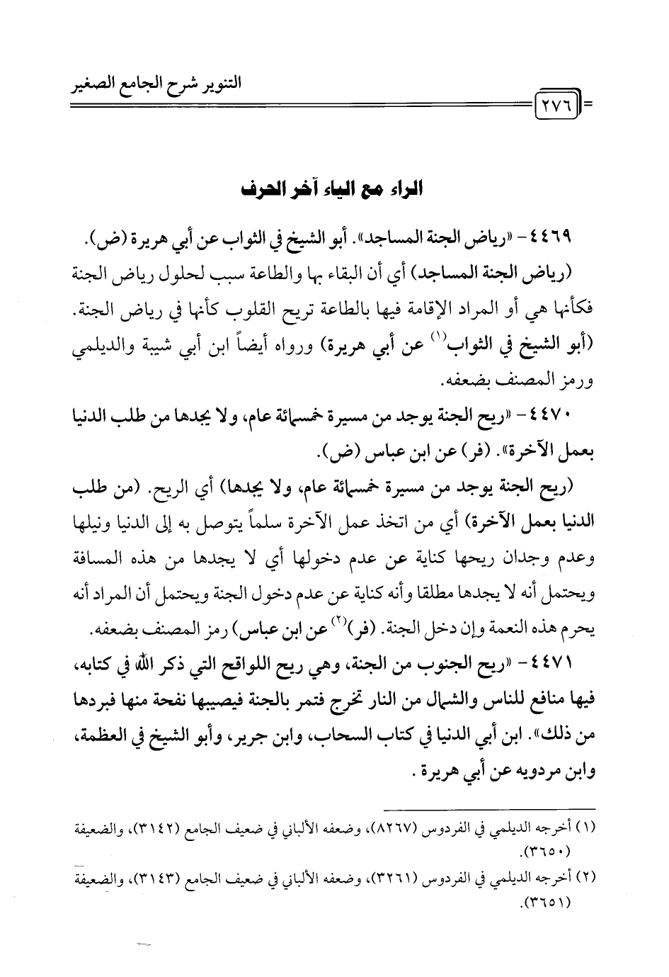 4469 - " رياض الجنة المساجد". أبو الشيخ في الثواب عن أبي هريرة (ض).