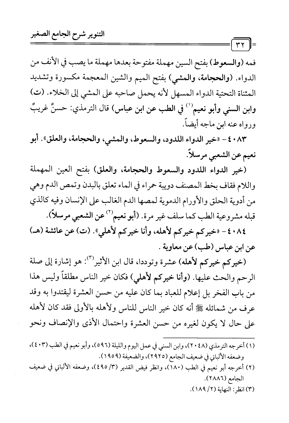 (¬2) أخرجه أبو نعيم في الطب (180)، وانظر فيض القدير (3/ 495)، وضعفه الألباني في ضعيف الجامع (2886).