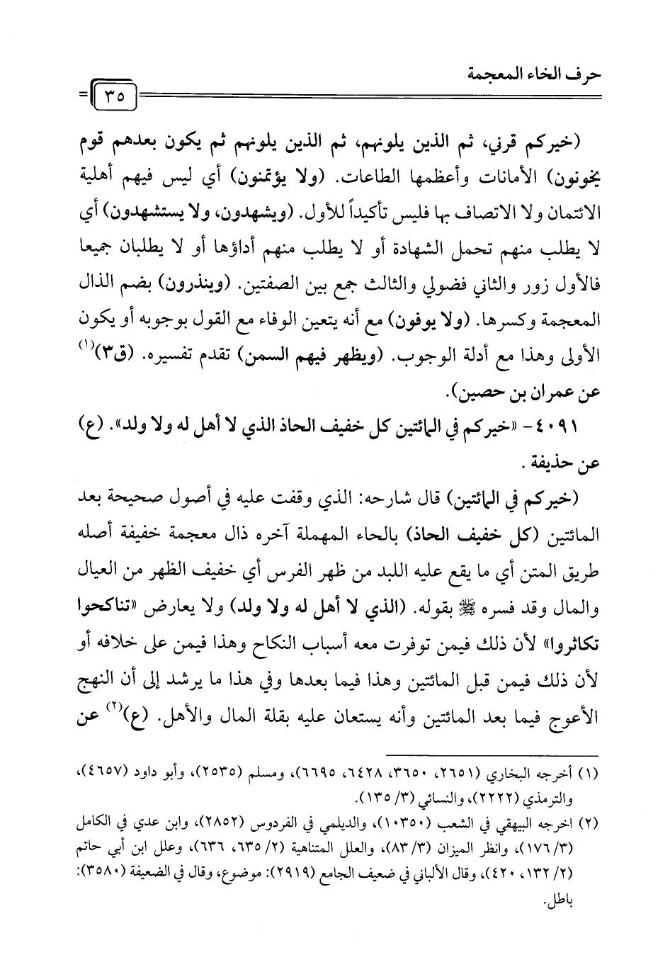 4091 - "خيركم في المائتين كل خفيف الحاذ الذي لا أهل له ولا ولد". (ع) عن حذيفة.