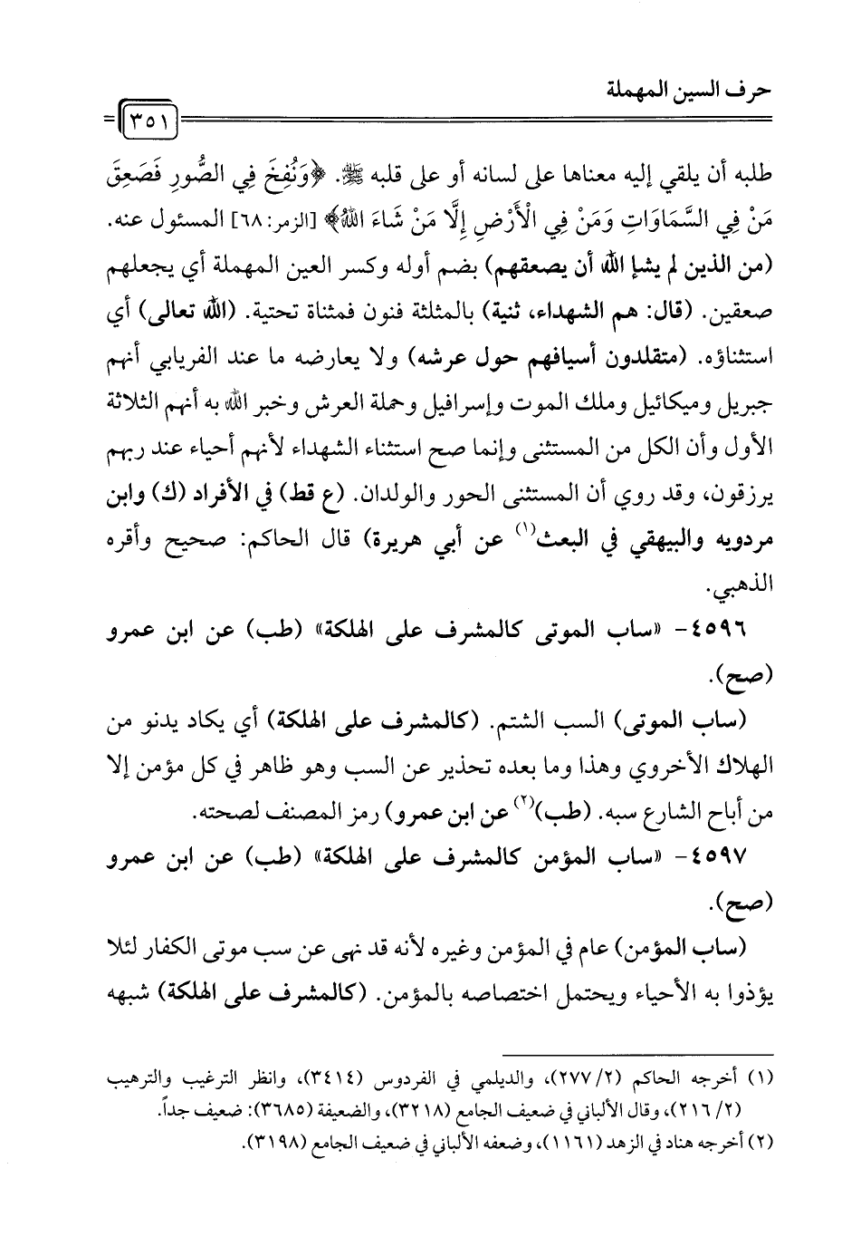 4597 - "ساب المؤمن كالمشرف على الهلكة" (طب) عن ابن عمرو (صح).