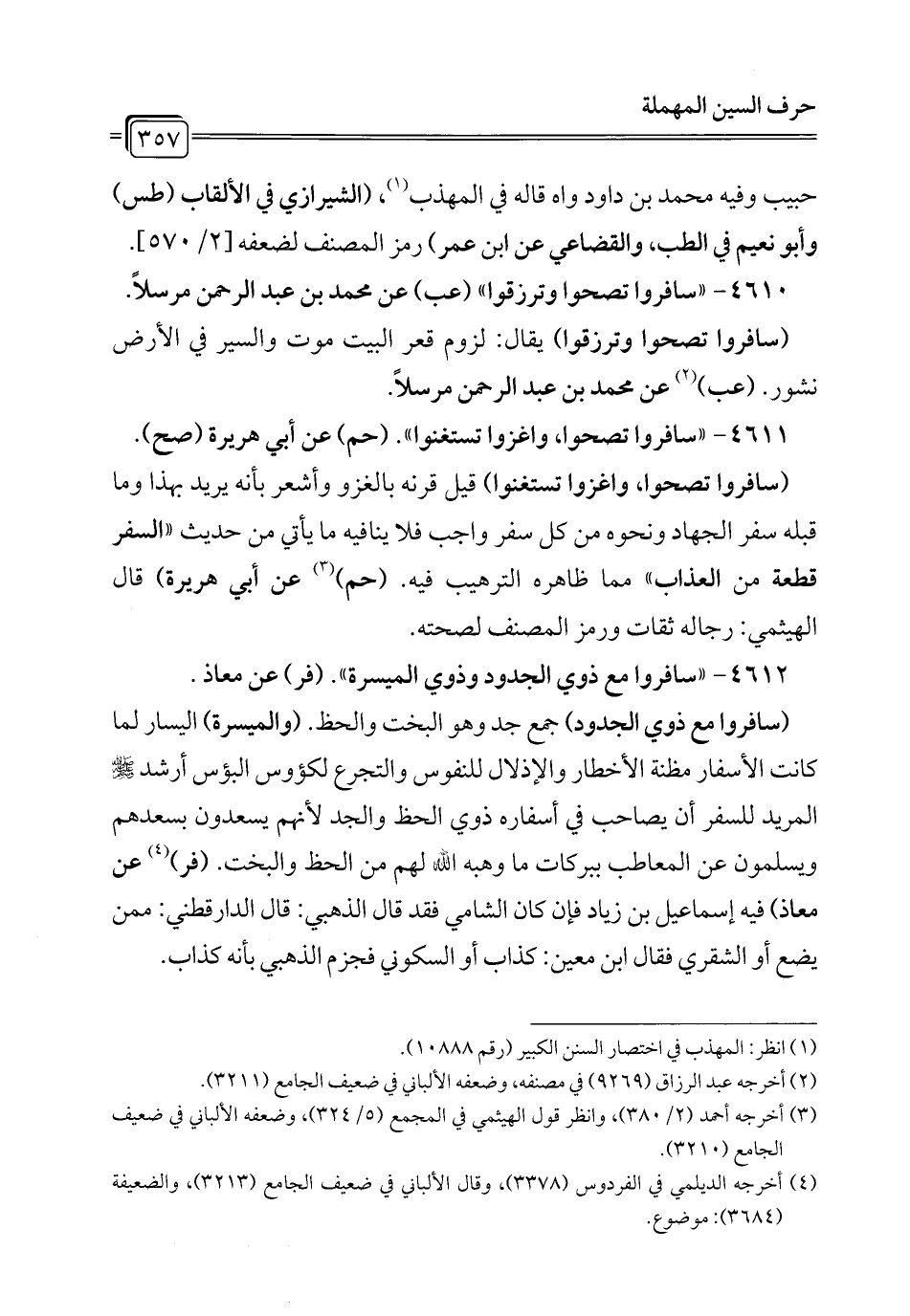 4612 - "سافروا مع ذوي الجدود وذوي الميسرة". (فر) عن معاذ.