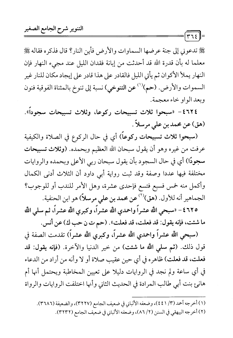 4624 - "سبحوا ثلاث تسبيحات ركوعا، وثلاث تسبيحات سجوداً". (هق) عن محمَّد بن علي مرسلاً.