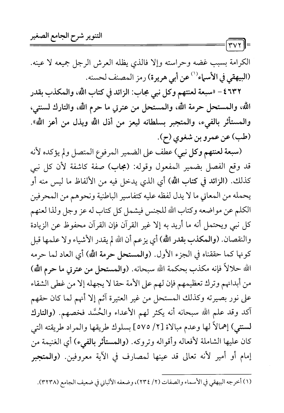 (¬1) أخرجه البيهقي في الأسماء والصفات (2/ 234)، وضعفه الألباني في ضعيف الجامع (3238).