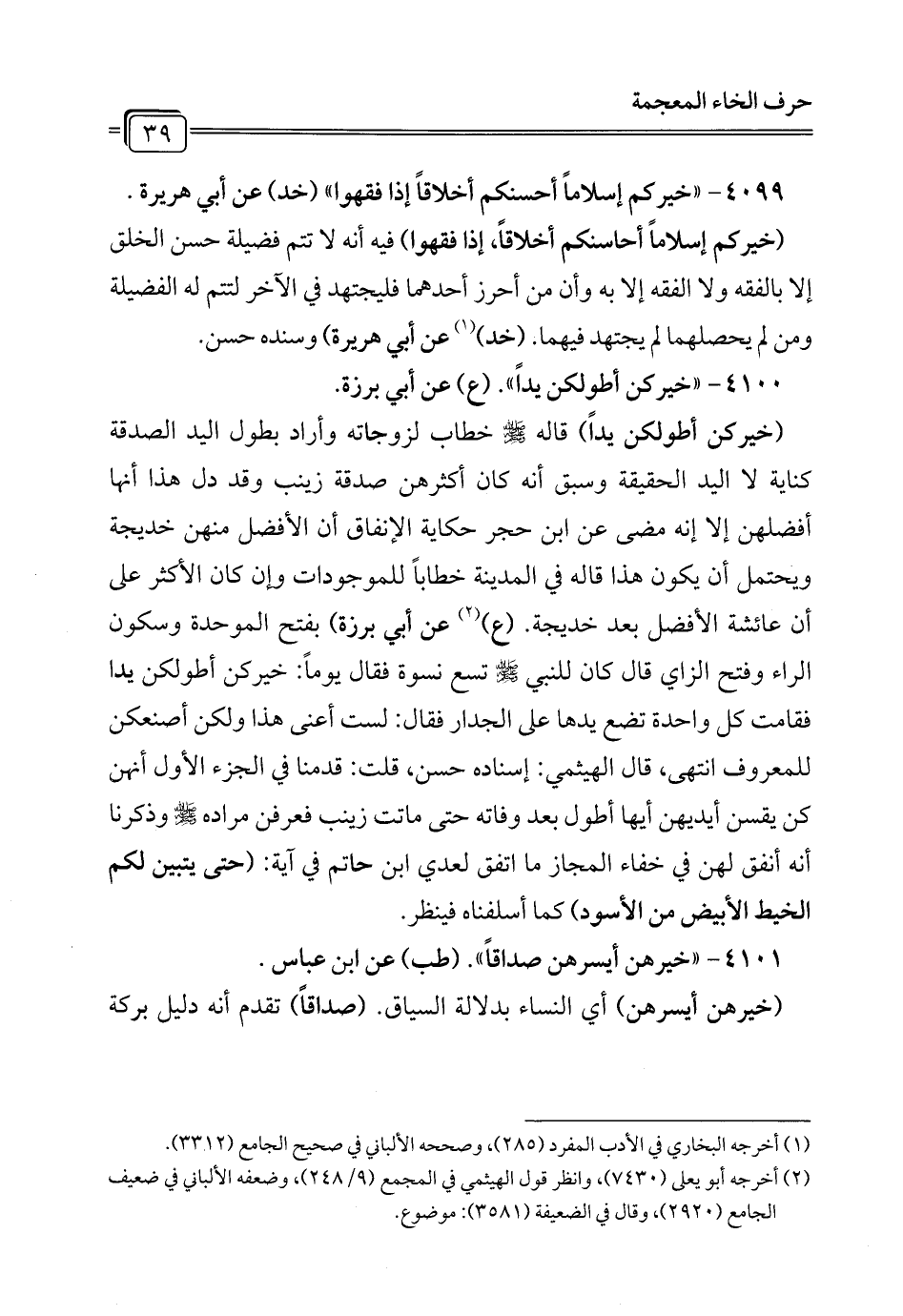4099 - "خيركم إسلاماً أحسنكم أخلاقاً إذا فقهوا" (خد) عن أبي هريرة.