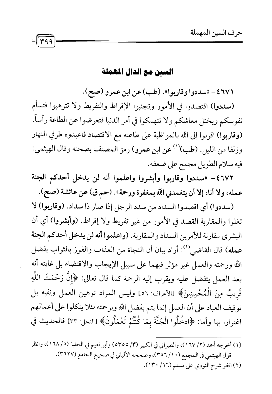 4671 - " سددوا وقاربوا". (طب) عن ابن عمرو (صح).