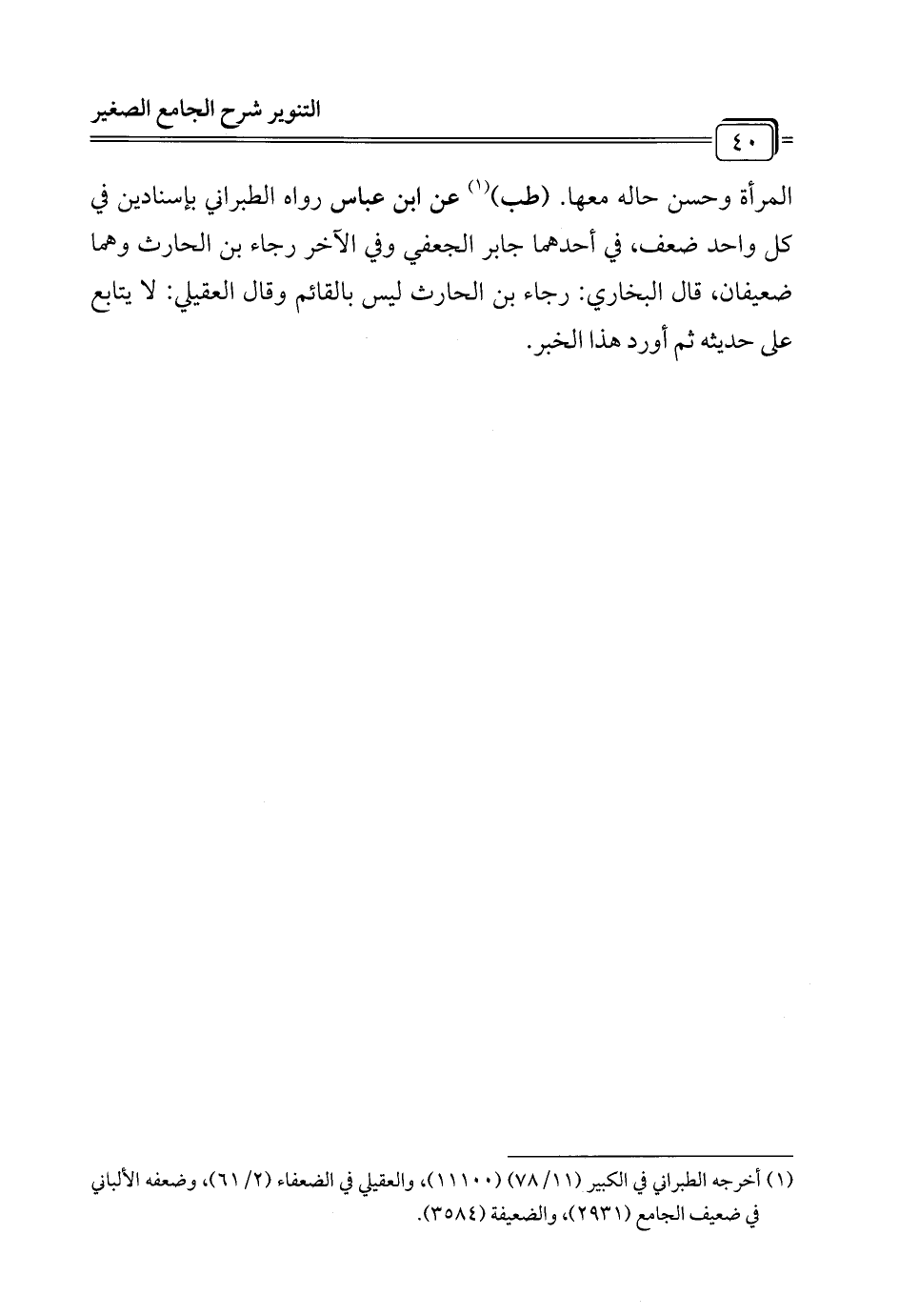 (¬1) أخرجه الطبراني في الكبير (11/ 78) (11100)، والعقيلي في الضعفاء (2/ 61)، وضعفه الألباني في ضعيف الجامع (2931)، والضعيفة (3584).