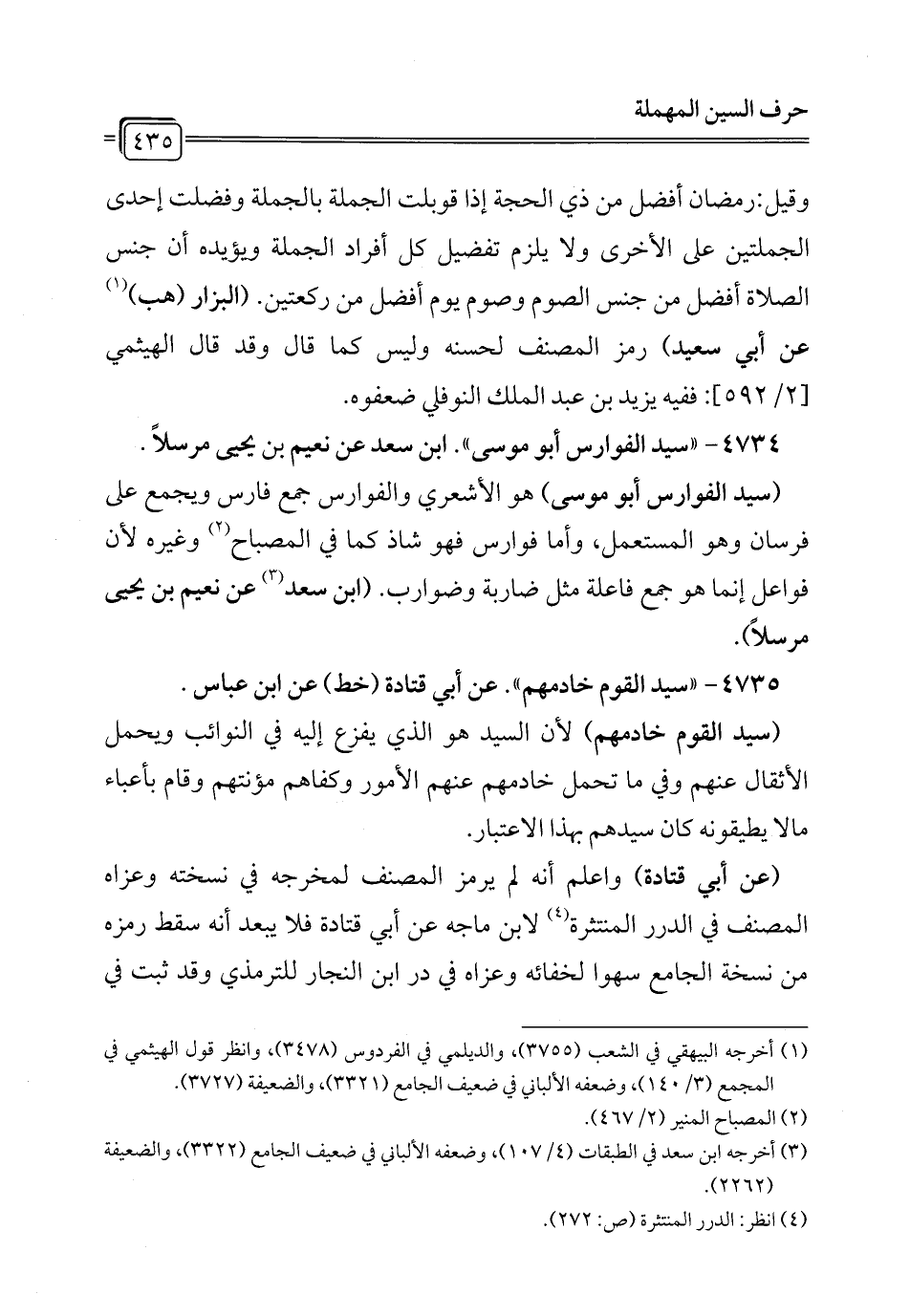 4735 - "سيد القوم خادمهم". عن أبي قتادة (خط) عن ابن عباس.