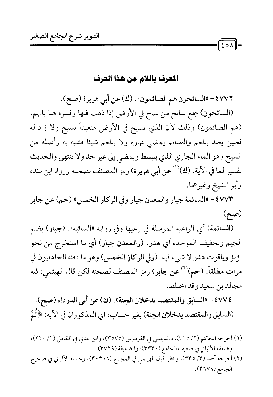 4772 - " السائحون هم الصائمون". (ك) عن أبي هريرة (صح).