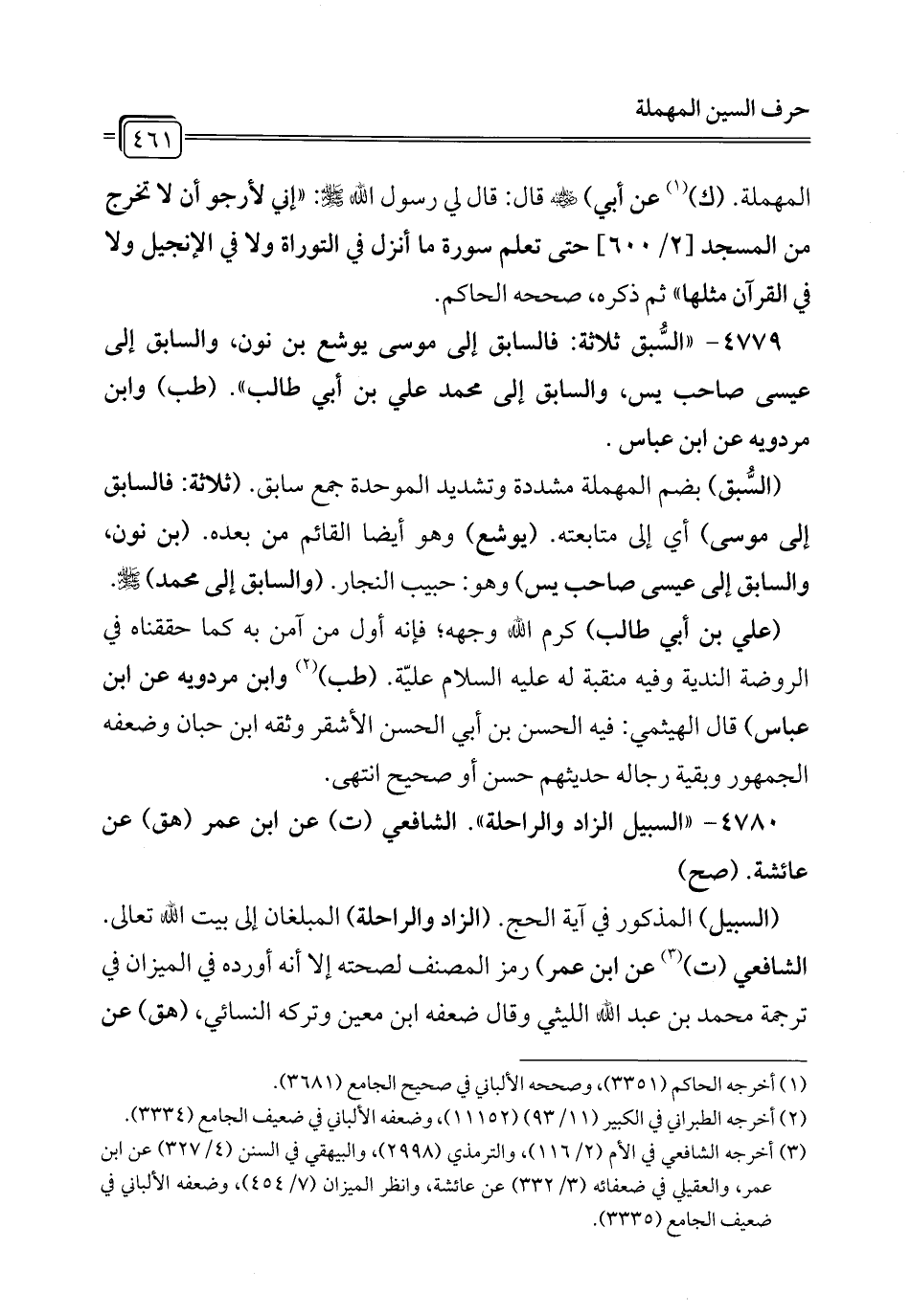 4779 - "السُّبق ثلاثة: فالسابق إلى موسى يوشع بن نون، والسابق إلى عيسى صاحب يس، والسابق إلى محمَّد علي بن أبي طالب". (طب) وابن مردويه عن ابن عباس.
