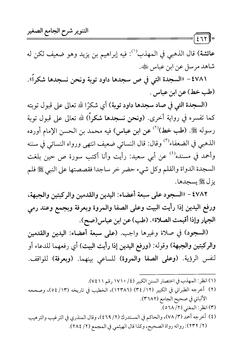 4781 - "السجدة التي في ص سجدها داود توبة ونحن نسجدها شكراً". (طب خط) عن ابن عباس.