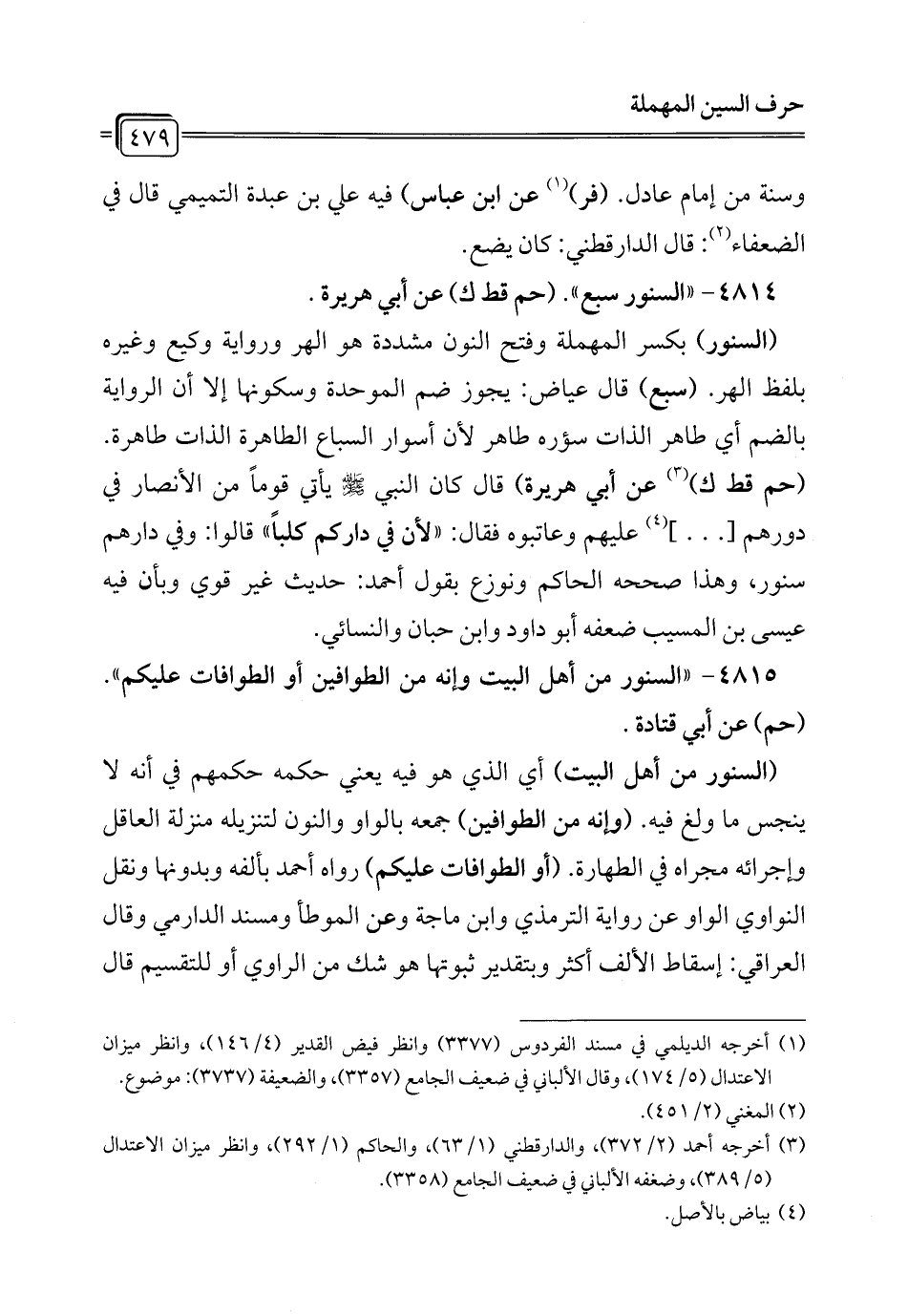 4814 - "السنور سبع". (حم قط ك) عن أبي هريرة.