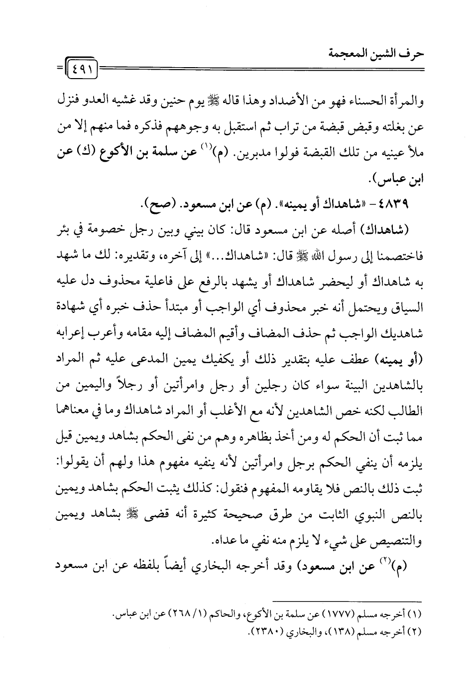 4839 - "شاهداك أو يمينه". (م) عن ابن مسعود. (صح).
