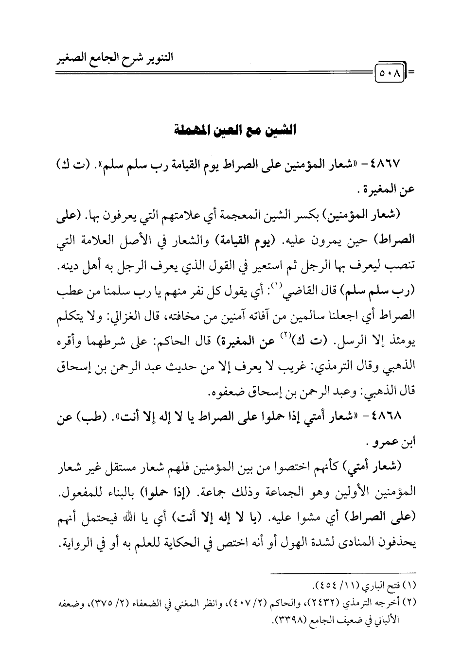 4867 - " شعار المؤمنين على الصراط يوم القيامة رب سلم سلم". (ت ك) عن المغيرة.