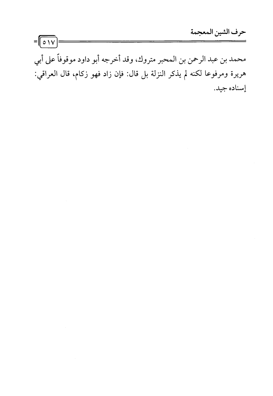 محمَّد بن عبد الرحمن بن المحبر متروك، وقد أخرجه أبو داود موقوفاً على أبي هريرة ومرفوعا لكنه لم يذكر النزلة بل قال: فإن زاد فهو زكام، قال العراقي: إسناده جيد.