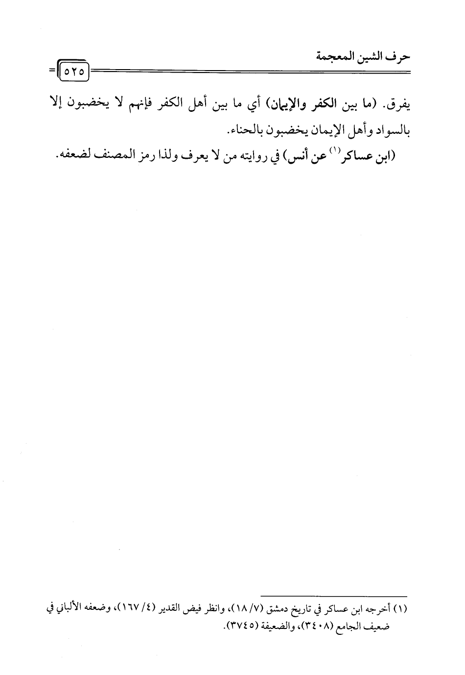 (¬1) أخرجه ابن عساكر في تاريخ دمشق (7/ 18)، وانظر فيض القدير (4/ 167)، وضعفه الألباني في ضعيف الجامع (3408)، والضعيفة (3745).