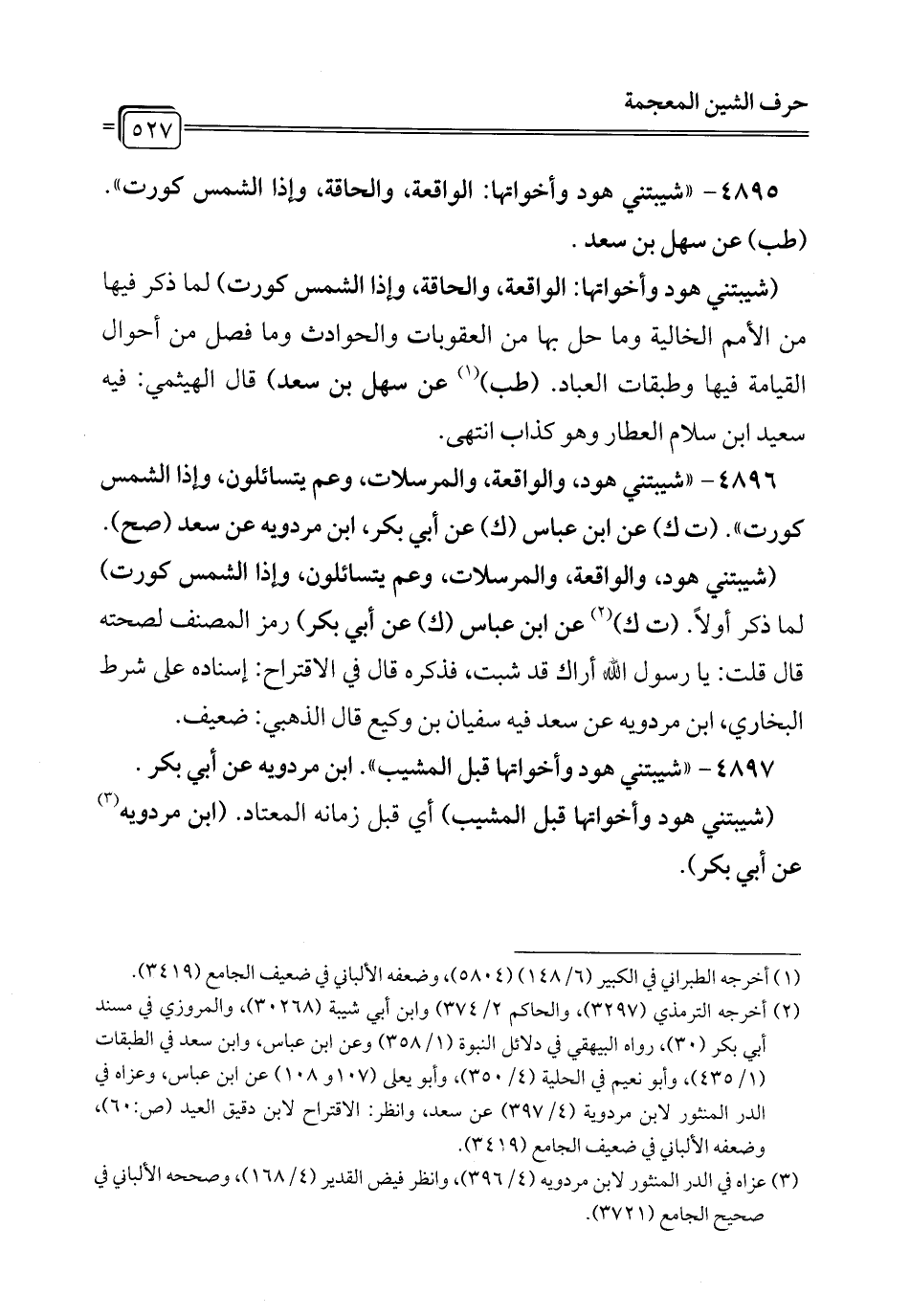 4897 - "شيبتني هود وأخواتها قبل المشيب". ابن مردويه عن أبي بكر.