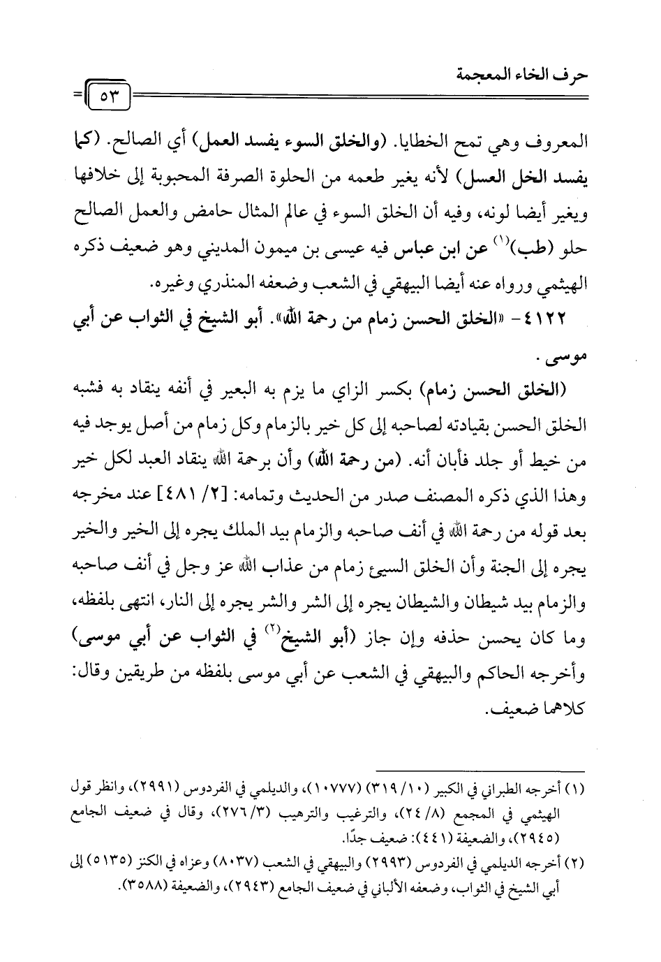4122 - "الخلق الحسن زمام من رحمة الله". أبو الشيخ في الثواب عن أبي موسى.