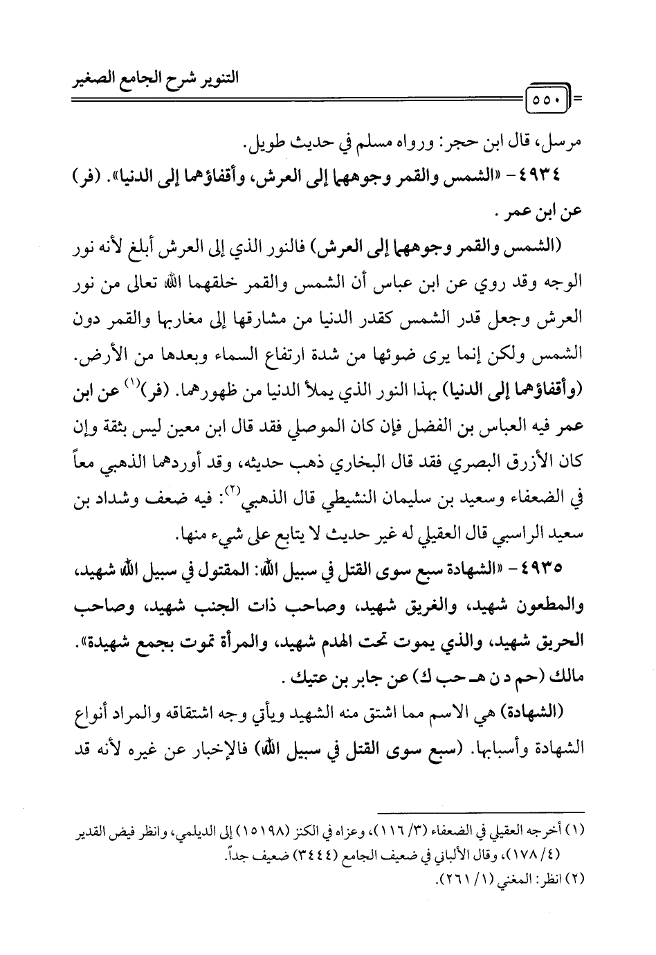 4934 - "الشمس والقمر وجوههما إلى العرش، وأقفاؤهما إلى الدنيا". (فر) عن ابن عمر.