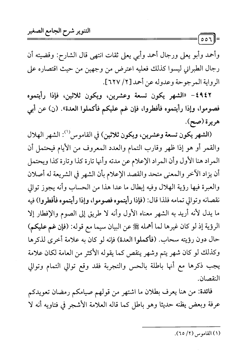 4942 - "الشهر يكون تسعة وعشرين، ويكون ثلاثين، فإذا رأيتموه فصوموا، وإذا رأيتموه فأفطروا، فإن غم عليكم فأكملوا العدة". (ن) عن أبي هريرة (صح).