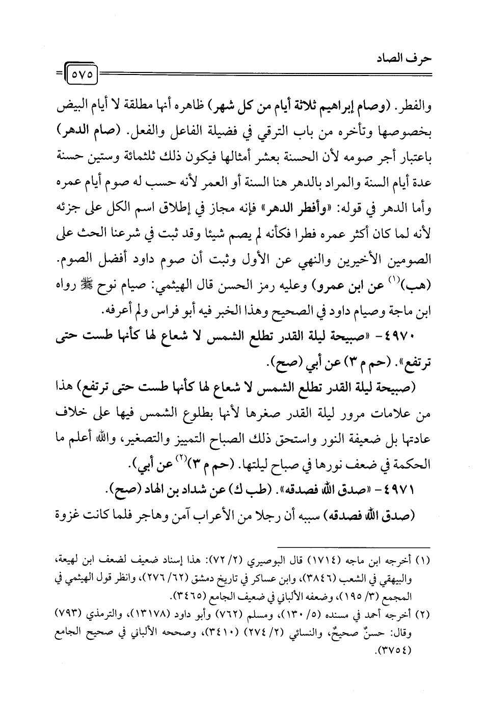 4970 - "صبيحة ليلة القدر تطلع الشمس لا شعاع لها كأنها طست حتى ترتفع". (حم م 3) عن أبي (صح).