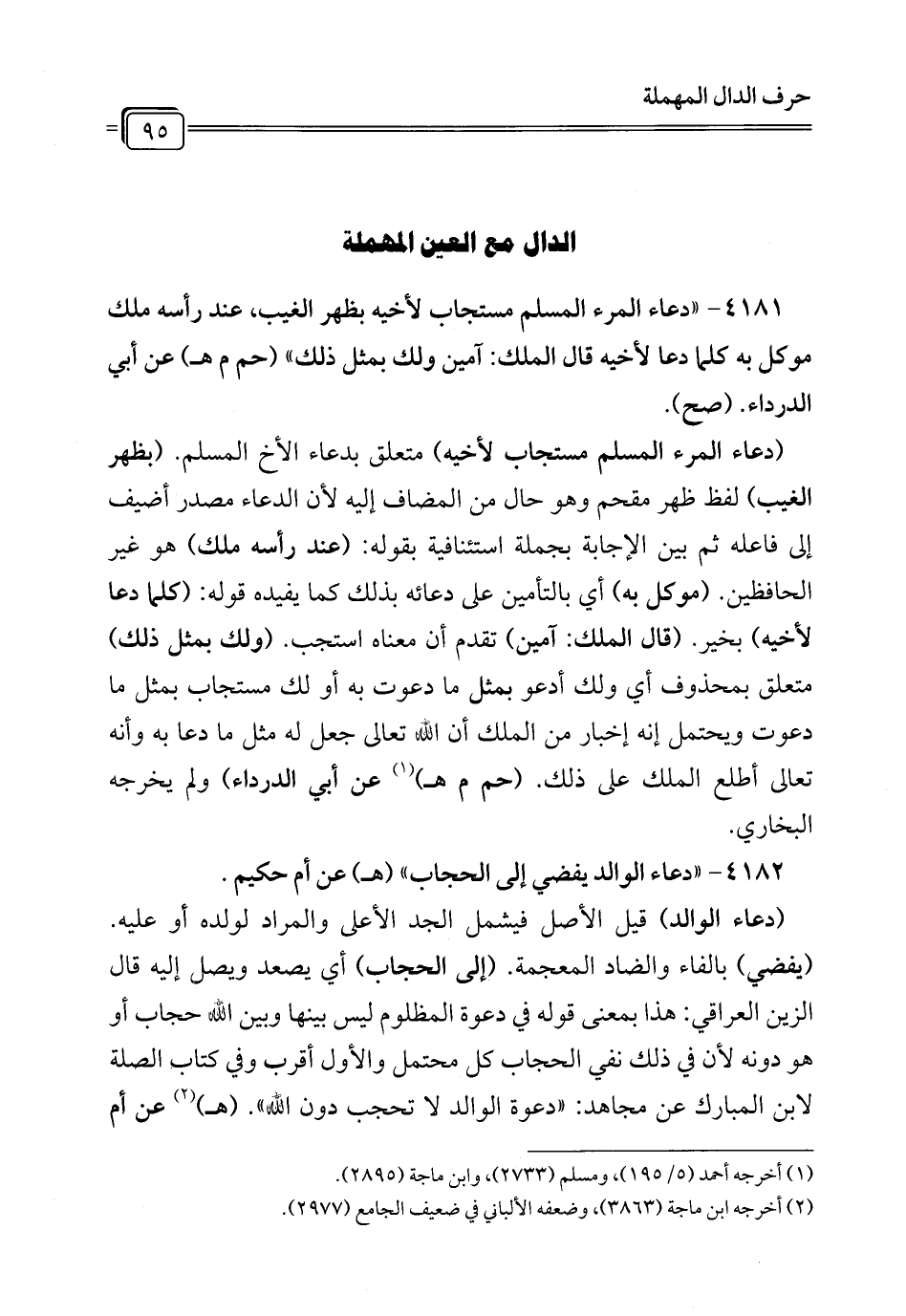4182 - "دعاء الوالد يفضي إلى الحجاب" (هـ) عن أم حكيم.