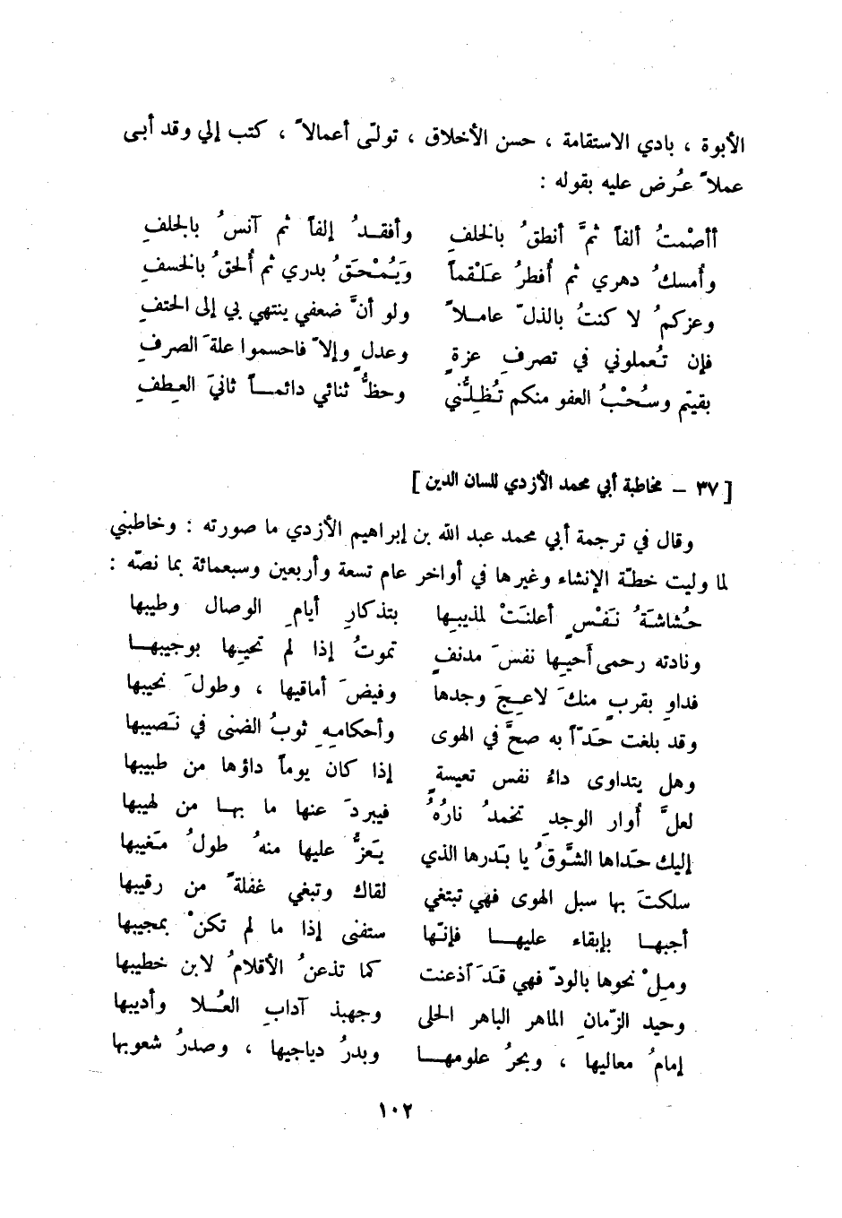 بقيتم وسحب العفومنكم تظلني ... وحظ ثنائي دائماًثاني العطف [37 - مخاطبة أبي محمد الأزدي للسان الدين]