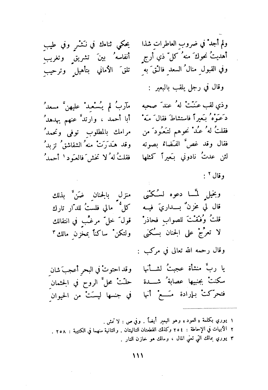 وفي القبول منال السعد فالق به ... تلق الأماني بتأهيل وترحيب وقال في رجل يلقب بالبعير: