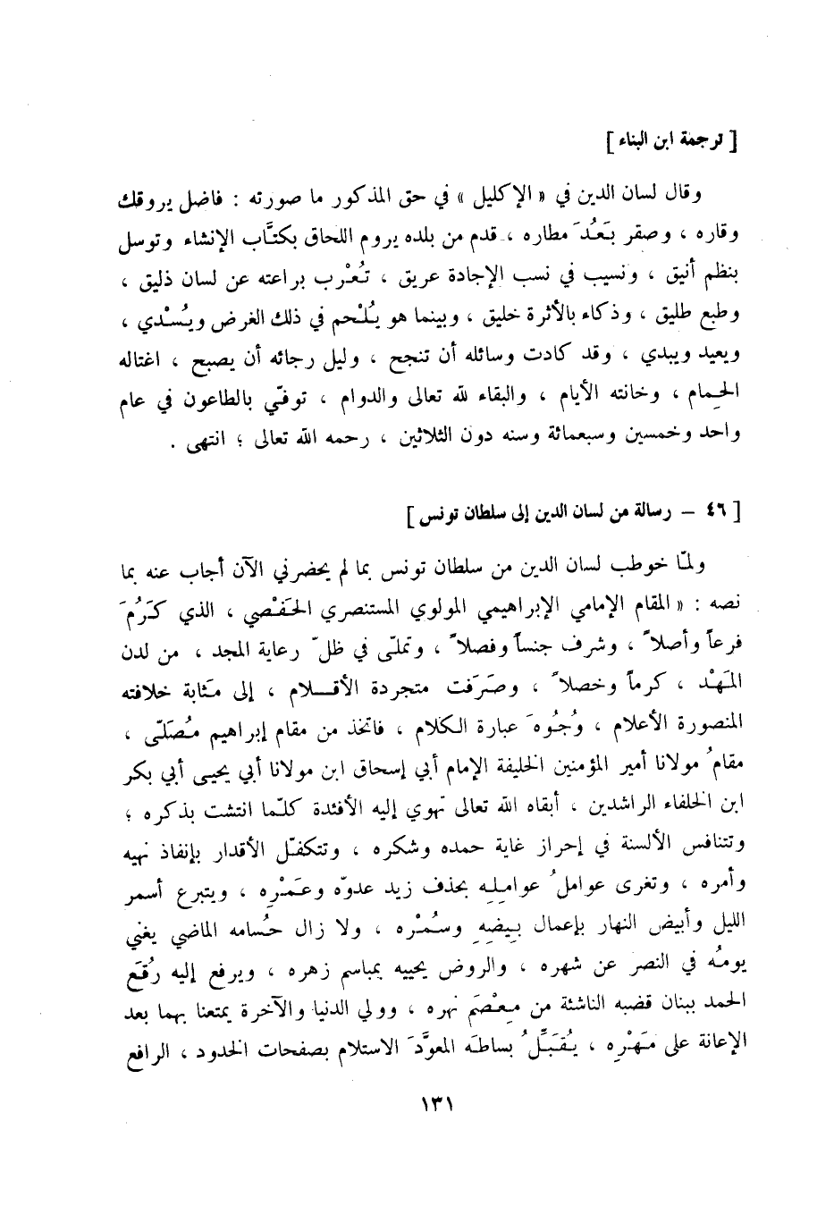 [46 - رسالة من لسان الدين إلى سلطان تونس]