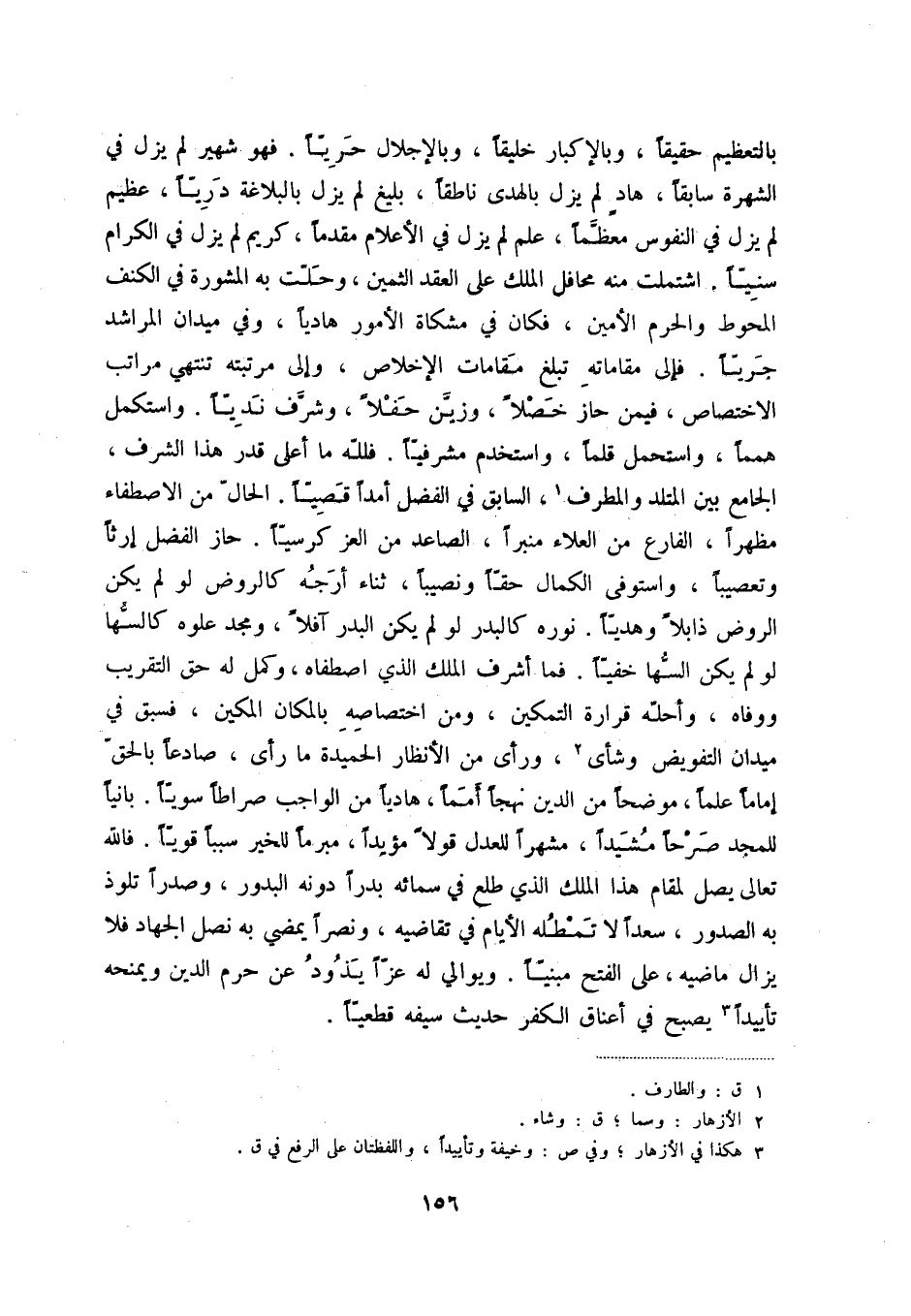 بالتعظيم حقيقاً، وبالإكبار خليقاً، وبالإجلال حرياً. فهوشهير لم يزل في الشهرة سابقاً، هاد لم يزل بالهدى ناطقاً، بليغ لم يزل بالبلاغة درياً، عظيم لم يزل في النفوس معظماً، علم لم يزل في الأعلام مقدماً، كريم لم يزل في الكرام سنياً. اشتملت منه محافل الملك على العقد الثمين، وحلت به المشورة في الكنف المحوط والحرم الأمين، فكان في مشكاة الأمور هادياً، وفي ميدان المراشد جرياً. فإلى مقاماته تبلغ مقامات الإخلاص، وإلى مرتبته تنتهي مراتب الاختصاص، فيمن حاز خصلاً، وزين حفلاً، وشرف ندياً. واستكمل همماً، واستحمل قلماً، واستخدم مشرفياً. فلله ما أعلى قدر هذا الشرف، الجامع بين المتلد والمطرف (1) ، السابق في الفضل أمداً قصياً. الحال من الاصطفاء مظهراً، الفارع من العلاء منبراً، الصاعد من العز كرسياً. حاز الفضل إرثاً وتعصيباً، واستوفى الكمال حقاً ونصيباً، ثناء أرجه كالروض لولم يكن الروض ذابلاً وهدياً. نوره كالبدر لولم يكن البدر آفلاً، ومجد علوه كالسها لولم يكن السها خفياً. فما أشرف الملك الذي اصطفاه، وكمل له حق التقريب ووفاه، وأحله قرارة التمكين، ومن اختصاصه بالمكان المكين، فسبق في ميدان التفويض وشأى (2) ، ورأى من الأنظار الحميدة ما رأى، صاعداً بالحق إماماً علماً، موضحاً من الدين نهجاً أمماً، هادياً من الواجب صراطاً سوياً. بانياً لمجد صرحاً مشيداً، مشهراً للعدل قولاً مؤيداً، مبرماً للخير سبباً قوياً. فالله تعالى يصل لمقام هذا الملك الذي طلع في سمائه بدراً دونه البدور، وصدراً تلوذ به الصدور، سعداً لا تمطله الأيام في تقاضيه، ونصراً يمضي به نصل الجهاد فلا يزال ماضيه، على الفتح مبنياً. ويوالي له عزاً يذود عن حرم الدين ويمنحه تأييداً (3) يصبح في أعناق الكفر حديث سيفه قطعياً.