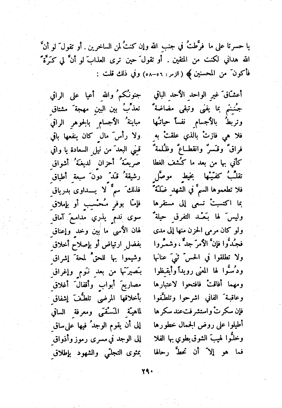 يا حسرتا على ما فرطت في جنب الله وإن كنت لمن الساخرين. أوتقول لوأن الله هداني لكنت من المتقين. أوتقول حين ترى العذاب لوأن لي كرة فأكون من المحسنين} (الزمر: 56 - 58) وفي ذلك قلت: