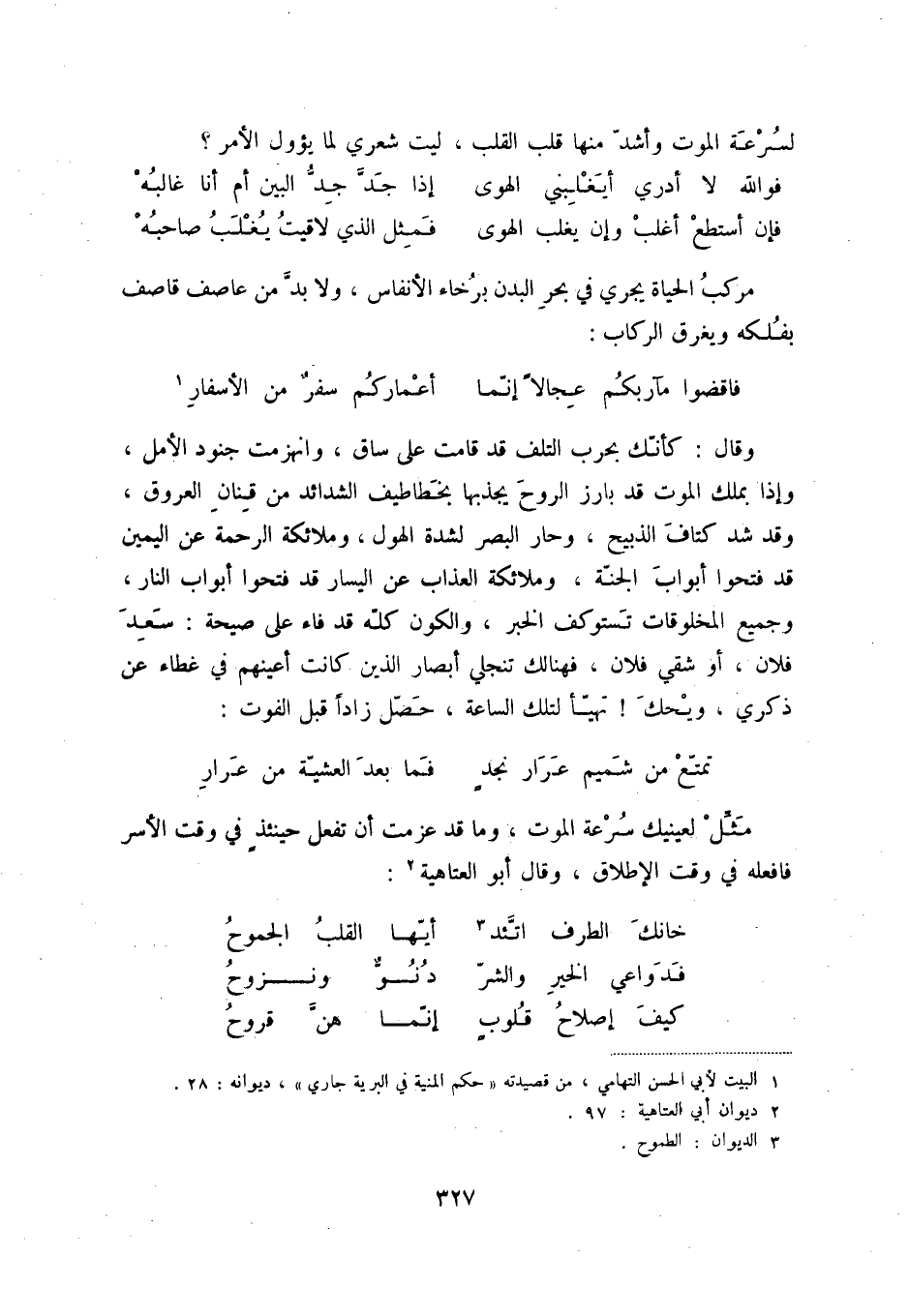 (1) البيت لأبي الحسن التهامي، من قصيدته " حكم المنية في البرية جاري "، ديوانه: 28.